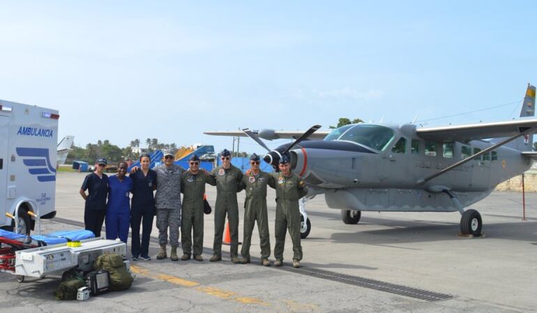A través de la cuenta en Twitter de la Fuerza Aérea Colombiana se compartieron videos y fotos que dan muestra de la llegada de la "ambulancia con alas".