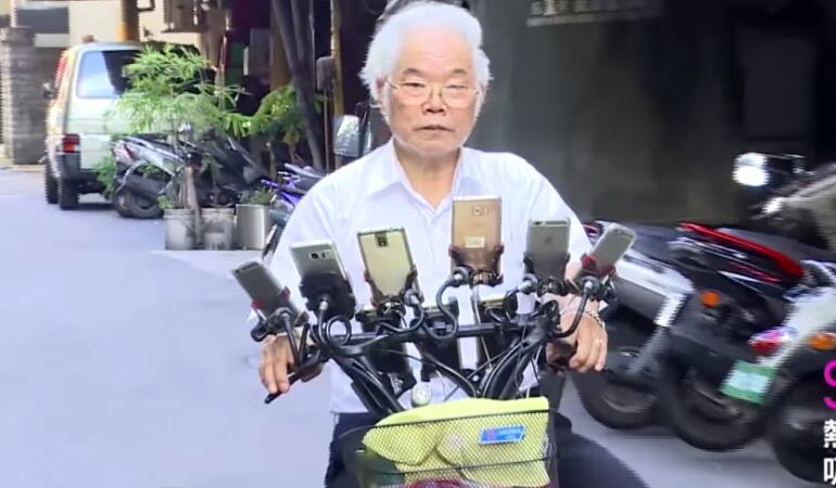 Pero lo que más llama la atención es que instaló en su bicicleta 11 celulares y no parecen ser suficientes, ya está fabricando un nuevo soporte con el que podrá transportar hasta 15 smartphones.