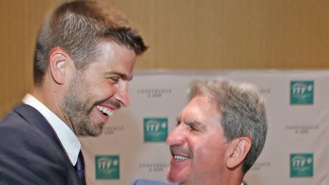 Gerard Pique y David Haggerty, presidente de la Federación Internacional de Tenis. (@GettyImages)