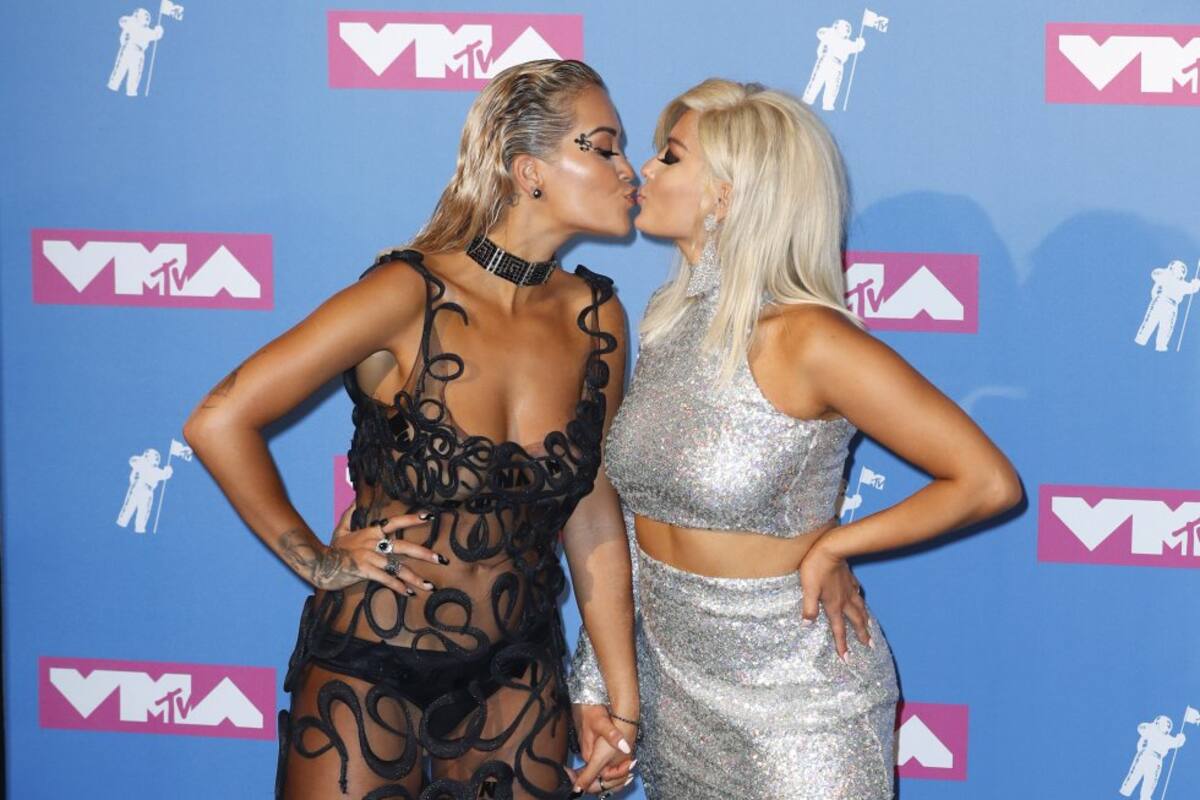 La cantante británica Rita Ora besa a la cantante estadounidense Bebe Rexha