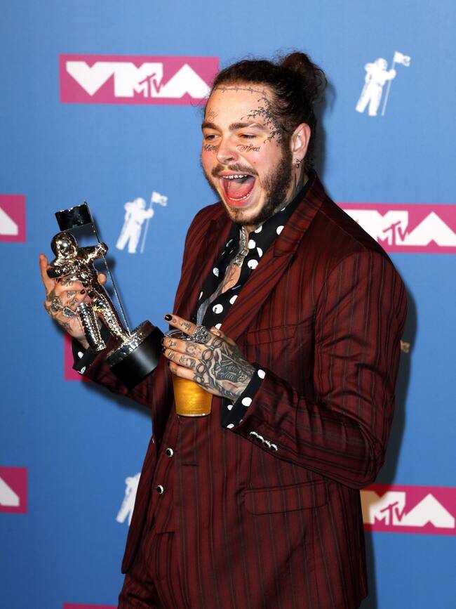 Foto 10 de 27El rapero Post Malone posa con su premio a Canción del Año