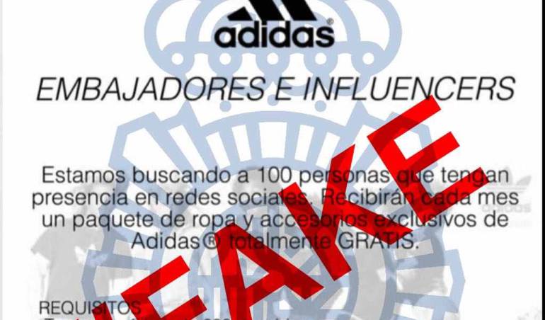 La Policía Nacional de España ha mencionado, por medio de Twitter, que es un engaño ya que Adidas no está buscando embajadores.