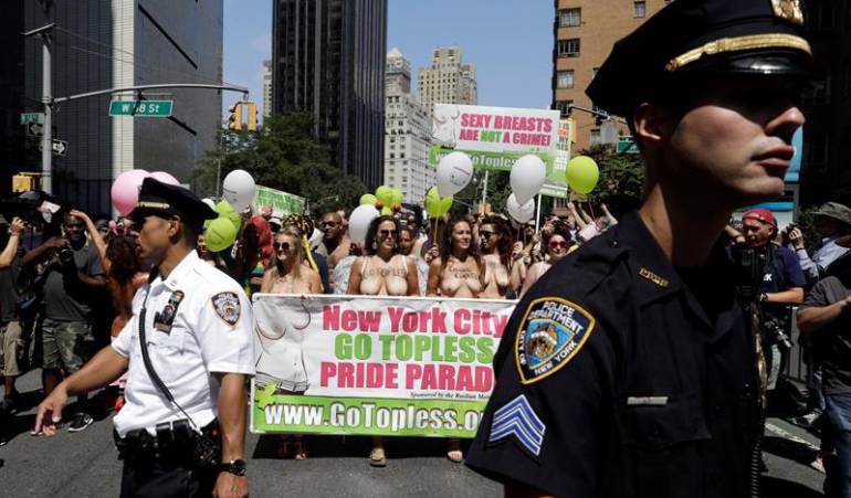 Mujeres de EE.UU. marchan en "topless" por la igualdad de género