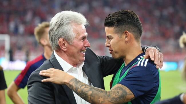 Durante el partido el colombiano también se reencontró con su exentrenador Jupp Heynckes, su primer técnico en el cuadro alemán.