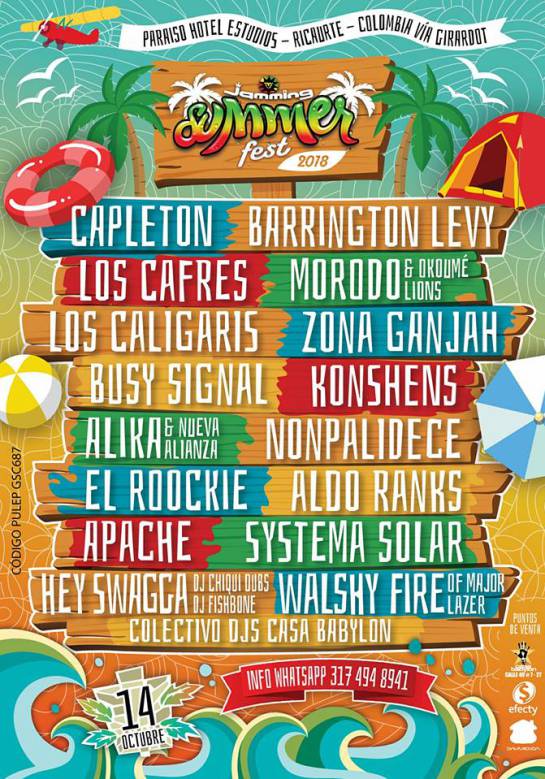El Jamming Summer Fest celebrará su segunda edición el próximo 14 de Octubre del 2018 en el Hotel Paraíso Estudio, ubicado en Ricaurte, Cundinamarca (Vía Girardot – Agua de Dios, km. 2) el primer hotel escenográfico de Colombia, un lugar de película, donde se podrá vivir una experiencia emocionante única e inolvidable en medio de una nutrida naturaleza, adornada con piscinas y todo tipo de entretenimientos y comodidades.