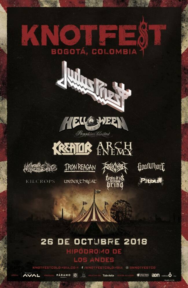 Judas Priest, Helloween, Kreator, Arch Enemy, Iron Reagan, Revocation, Masacre, Goatwhore, Kilcrops, Underthreat, Cuentos de los Hermanos Grind y Pitbull. Esto son los invitados de esta primera edición de Knotfest Colombia.