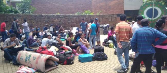 Al principio, los extranjeros y los compatriotas retornados se quedaban descansaban unas horas en el lugar, pero luego empezaron a instalar carpas y extendieron su estadía, tanto que las autoridades locales han comenzado a considerar alternativas para sacarlos de allí.
