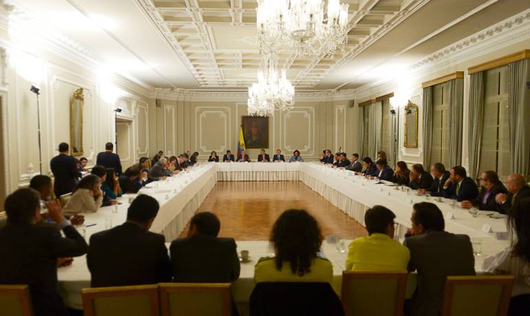 Por su parte, el presidente Iván Duque, calificó la reunión como positiva y dijo que se va a “constituir una mesa técnica, donde todos los partidos tendrán un representante, liderada por la ministra del Interior, Nancy Gutiérrez, y la idea es que en los próximos días tengamos consensuados los textos y darle trámite de urgencia a todo este paquete”.