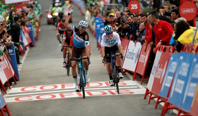 El francés Alexandre Geniez se quedó con la victoria en la etapa 12 de la Vuelta a España, luego de coronar una fuga de más 100 kilómetros compuesta por 18 corredores y que, además, dejó un nuevo líder de la carrera, el español Jesús Herrada. Herrada aprovechó los más de 11' de retraso con los que el pelotón cruzó de favoritos cruzó la meta.