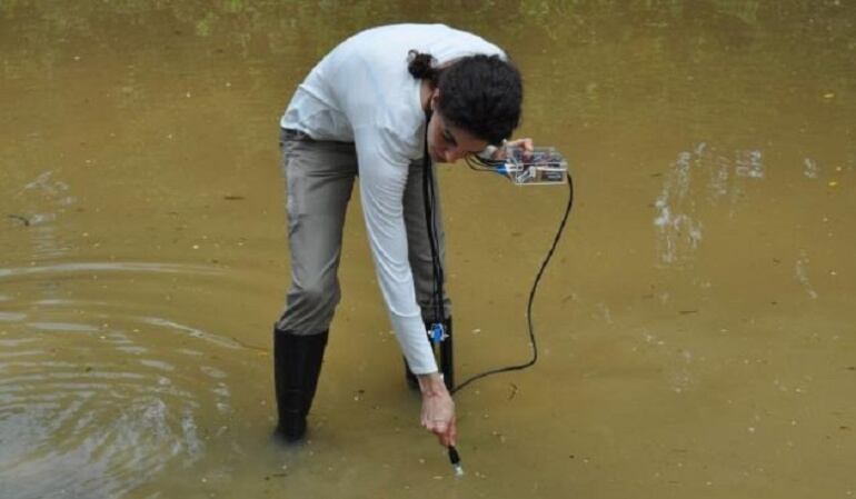 Agregó que el dispositivo mide cuatro variables fisicoquímicas en el agua: niveles de pH, conductividad, temperatura y oxígeno disuelto y, a su vez, monitorea la presencia de metales pesados en el agua, incluido el mercurio.