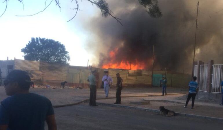Según un informe preliminar de la policía, el siniestro se declaró alrededor de las 16.30 horas (19.30 GMT) en la denominada toma Frei Bonn a la que concurrieron todas las compañías de bomberos y camiones aljibes de la zona.