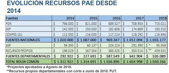 En septiembre de 2013, el Ministerio de Educación Nacional (MEN) asumió la competencia de ejecución del PAE. Se proyectó la operación del PAE mediante convenios con 31 ETC, de los cuales 21 fueron terminados por mutuo acuerdo debido a la falta de recursos.