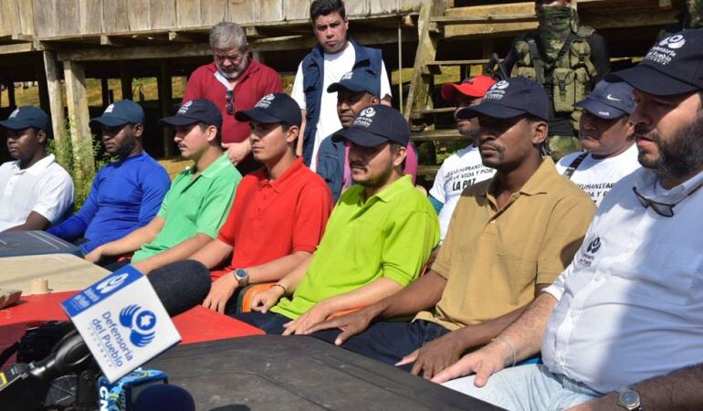 Los miembros de la fuerza pública y los dos civiles fueron secuestrados hace más de un mes por la guerrilla del ELN, cuando se movilizaban por el río Atrato en el departamento del Chocó.