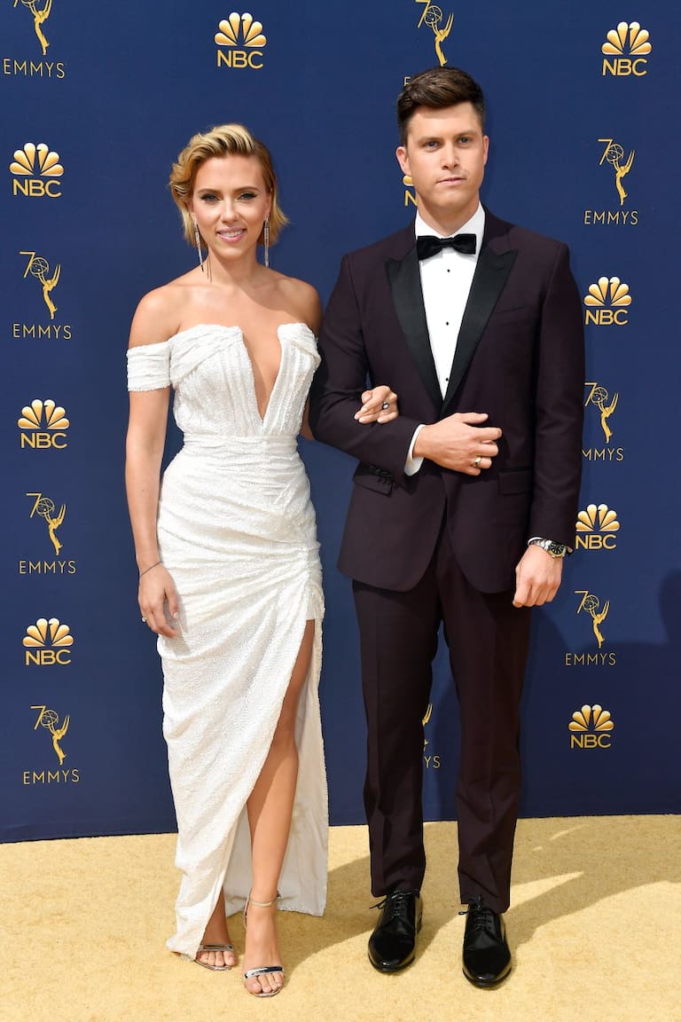 Scarlett Johansson y Colin JostElla llevaba un vestido de Balmain, sandalias de Christian Louboutin y joyas de Nikos Koulis. Él de Dolce & Gabbana.