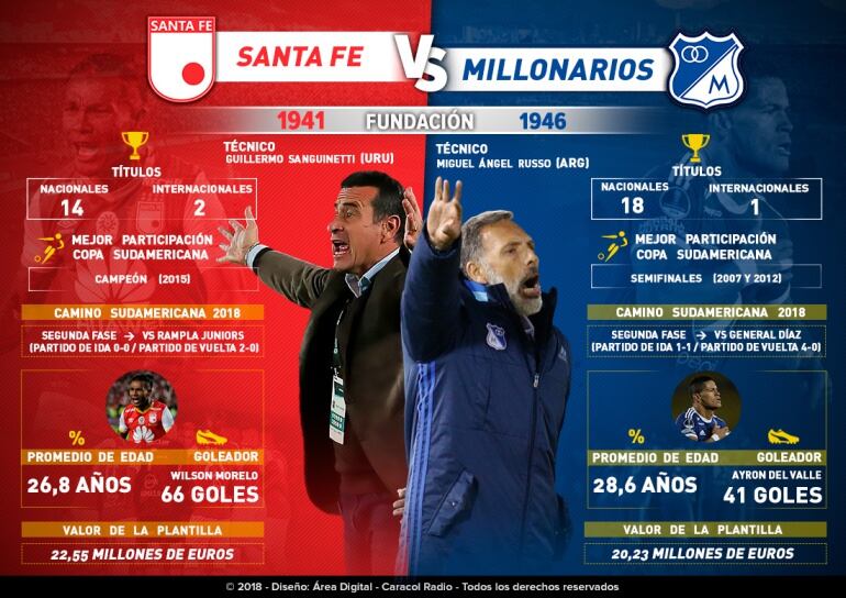 Santa Fe Vs. Millonarios, cara a cara en Copa Sudamericana
