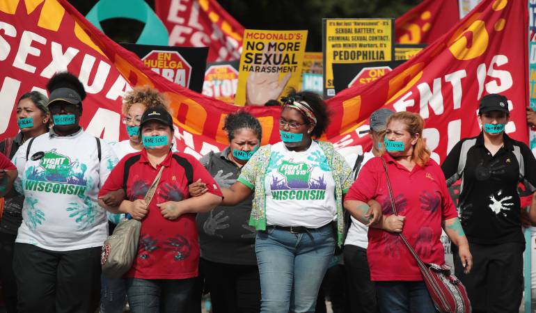 Cerca de un centenar de cajeras y cocineras de los establecimientos de comida rápida McDonald's salieron hoy a una protesta en Chicago contra el acoso sexual que, según dijeron, enfrentan a diario durante el trabajo.
