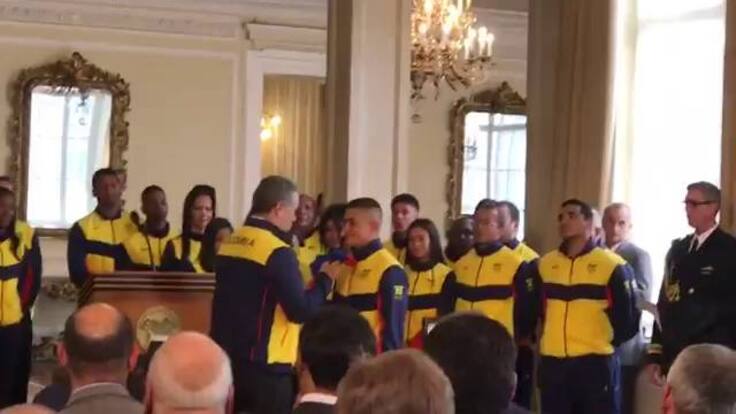 El clavadista antioqueño Daniel Restrepo fue el encargado de recibirla a manos de Iván Duque.