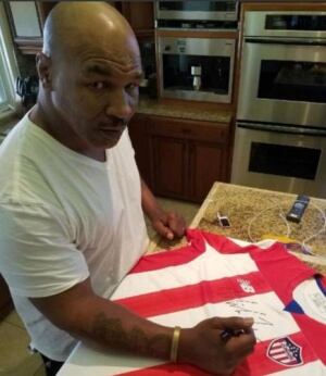 Las fotos fueron tomadas en Las Vegas (EE.UU.) y en una de ellas se ve a Tyson con la camisa "rojiblanca" puesta y en la otra firmando un autógrafo, en lo que parece ser la cocina de su casa.