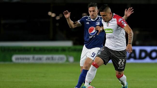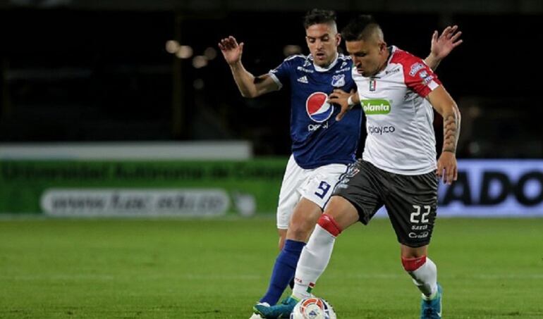 Mientras se consumían los últimos segundos del primer tiempo, Millonarios consiguió descontar en el tanteador, tras un rebote en el área del 'blanco blanco' que aprovechó el argentino Gabriel Hauche al 40+1'.