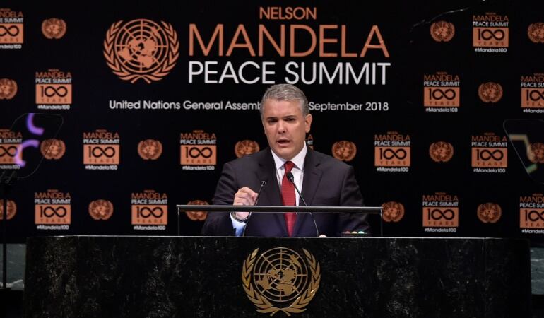 "El liderazgo de Mándela fue único. Vengo hoy en representación de un país y una generación que se inspira en los valores de Mandela. Un país que no se rinde jamás", dijo Duque.