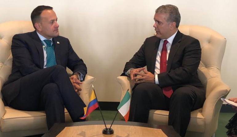 Irlanda abrirá "muy pronto" una embajada en Colombia, afirmó hoy el presidente del país suramericano, Iván Duque, al término de una reunión en Nueva York con el primer ministro de la nación europea, Leo Varadkar.