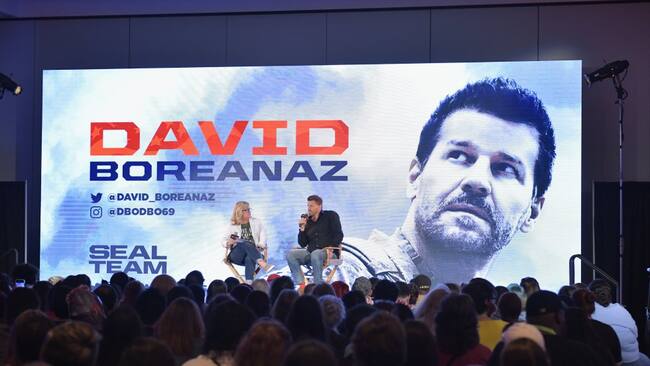 Foto 3 de 10El actor David Boreanaz habla en el escenario durante una conversación con el panel de David Boreanaz durante el Comic Con 2018 de Nueva York en el Javits Center el 4 de octubre de 2018 en la ciudad de Nueva York.