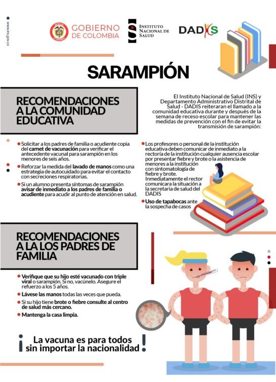 Un llamado a las familias realizó el Instituto Nacional de Salud, para que se adopten las medidas de prevención, tras identificarse 108 casos de sarampión en lo corrido del año. La entidad alertó especialmente a los habitantes y turistas en Cartagena.