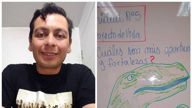 El profesor de 37 años dibuja en el tablero 'memes' o dibujos animados para realizar una clase más divertida y que estas sean un poco más amenas para los estudiantes.