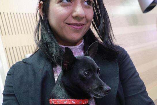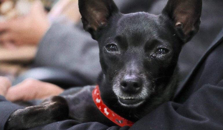 Desde hace 4 años Winnie, un perro pinscher negro, acompaña a Rodrigo Londoño y su esposa.