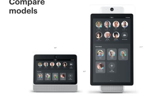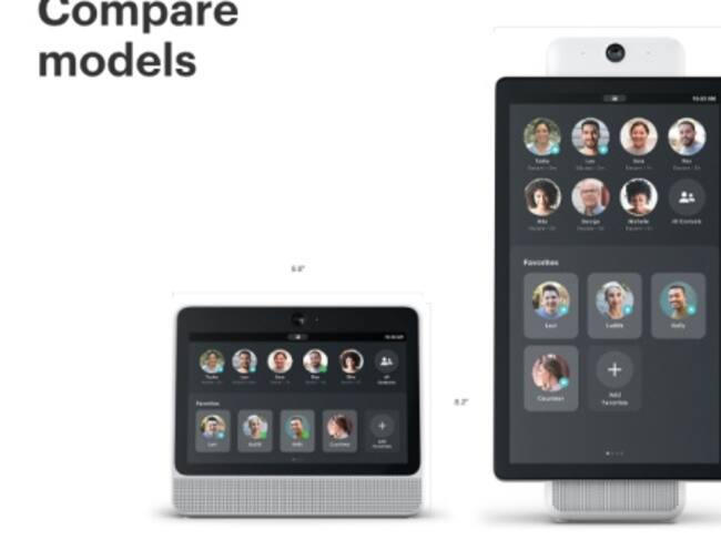 'Portal' es el nombre de los dispositivos que vienen en dos tamaños. El primero cuenta con un panel de 10,1 pulgadas y una resolución 720p. Viene con una cámara en la parte superior y dos altavoces en la inferior.