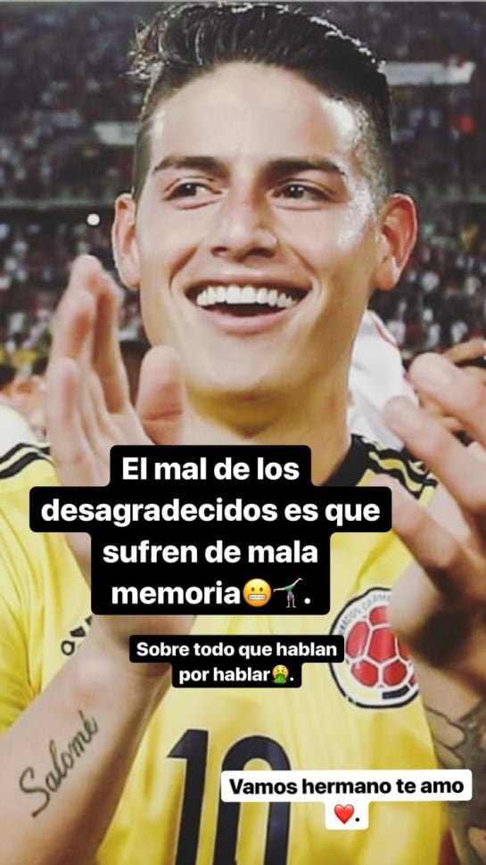 Cientos de críticas hacia el titular colombiano, se generaron en redes sociales, lo que causo la molestia de su hermana Juana Valentina se desahogó por medio de su cuenta de Instagram, donde afirmó que todas las personas que critican a James Rodríguez solo son unos “desagradecidos”.