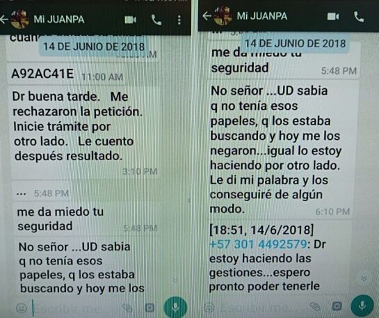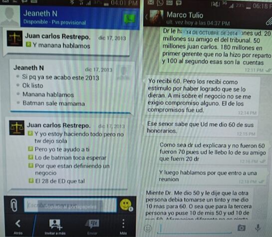 El abogado Quintero entregó los chat con la ex fiscal y otros que compartió con un abogado de alias ‘El Mellizo’ y donde cuentan los por menores de la entrega de información a cambio de “documentos” que para la Fiscalía era dinero en efectivo.