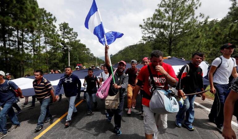 "Estados Unidos informó con firmeza al presidente de Honduras que si la gran caravana de personas que se dirigen a Estados Unidos no es frenada y llevada de vuelta a Honduras, no habrá más dinero ni ayuda para Honduras, con efecto inmediato", dijo Trump en Twitter.