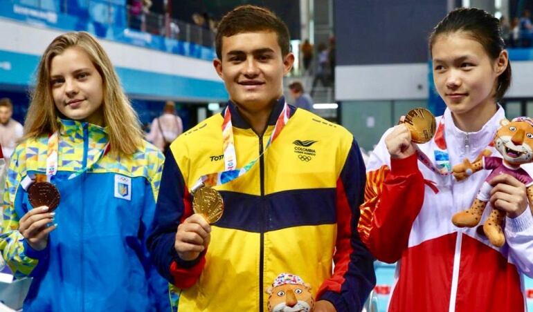Restrepo, de 18 años, logró su primer oro el pasado domingo en la prueba de trampolín de tres metros. Este miércoles, junto con la china Shan Lin, se colgaron el oro en la prueba de equipos mixtos.