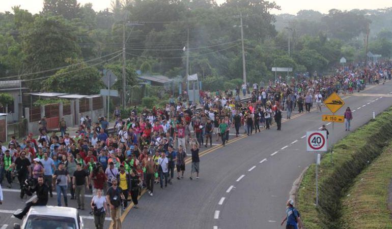 De acuerdo con fuentes de Protección Civil de México, son más de 3.000 los migrantes que recorren los casi 40 kilómetros que hay entre Ciudad Hidalgo y Tapachula, la segunda ciudad más importante del estado mexicano de Chiapas, donde han anunciado que pasarán la noche.