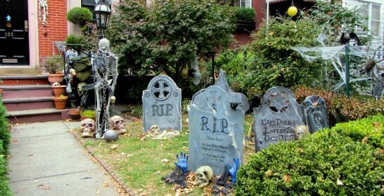 La entrada de la casa o el jardín son los lugares indicados para colocar las terroríficas lapidas, dándole a este lugar una apariencia de cementerio abandonado.