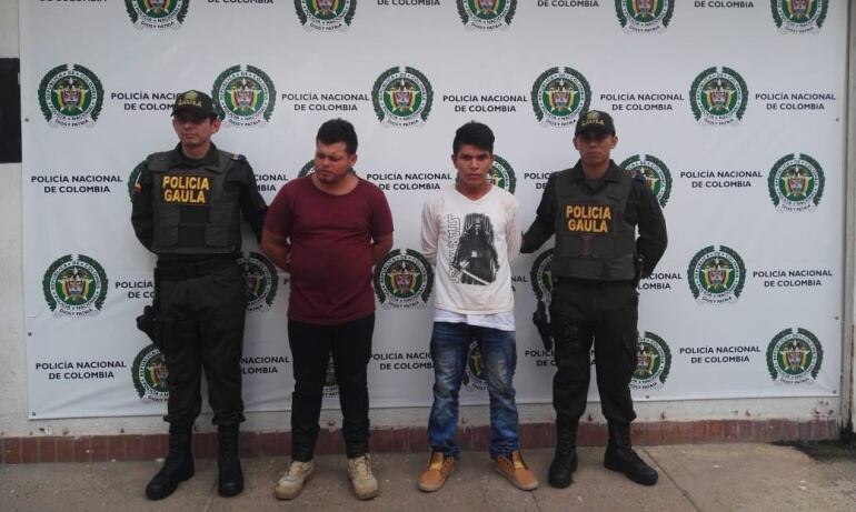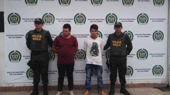 Según el coronel de la policía, Miguel Ángel Botía Murillo, fueron capturados Dilson Yesid Montenegro Montenegro de 20 años de edad y Leonardo Hermey de 28 años de edad, cuando le exigían una suma de dinero al propietario de un establecimiento comercial.