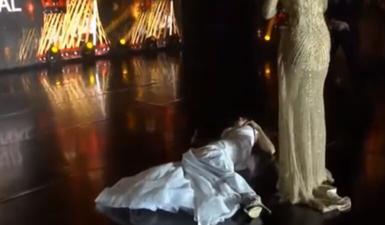 Clara Sosa, representante paraguaya y ganadora del certamen Miss Grand International, duró varios minutos inconsciente pero finalmente se recuperó y recibió la corona.