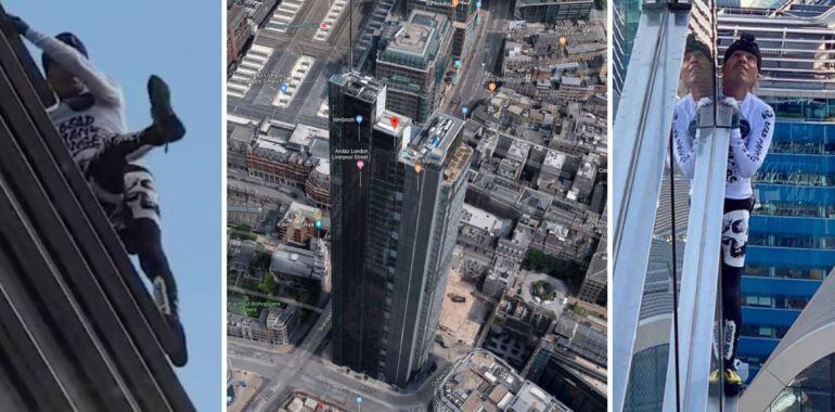 Esta vez Alain Robert, el deportista escalador de montaña más conocido como French Spiderman, se juega la vida escalando una de las torres más altas de Londres.