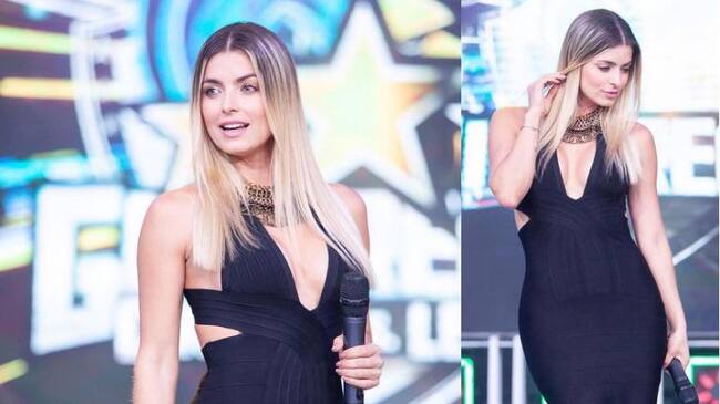 En las imágenes aparece primero en ropa muy ajustada que hace resaltar su gran figura.