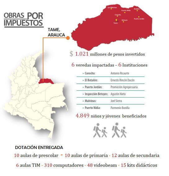 En Tame, Arauca una empresa construyó cerca de 40 aulas y entregó equipos educativos para el posconflicto.