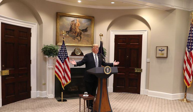 "Si alguien lanza piedras o rocas -como hicieron en México- se les podrá disparar, porque si te dan con una piedra en la cara...", apuntó Trump durante una comparecencia en la Casa Blanca.