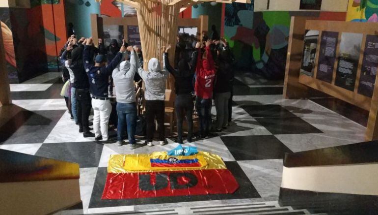 La manifestación denominada como “La Tertulia por la Educación” la realizan unos 30 estudiantes de las universidades Nacional, Pedagógica y Distrital desde la noche de este miércoles.