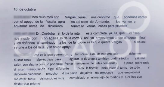 Conversación presuntamente entre Natalia Londoño, a quien el fiscal del caso ha descrito como asistente del abogado Jaime Lombana y el identificado como el Doctor Cordoba