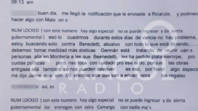 En otra interceptación, de más de 100 que existen, un número que aparece bloqueado insiste que es necesario buscar a más personas en ciertas regiones del país e interesadas en dinero.