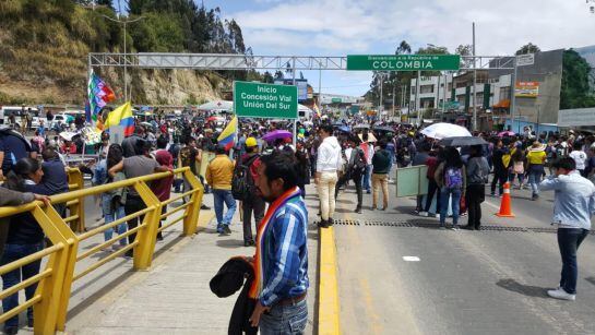 En Nariño decenas de jóvenes se apostaron en el puente internacional de Rumichaca para insistir al gobierno en soluciones a la desfinanciación de la universidad pública.
