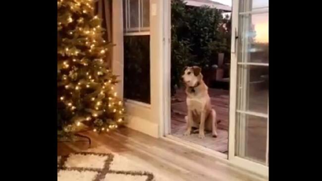 En el video se ve como llaman al perro para que entre, pero él hace caso omiso a sus llamados, porque piensa que la puerta está cerrada, al ver que no entra, la dueña se para y hace un movimiento, donde simula que abre la puerta, es allí donde finalmente la mascota entra.