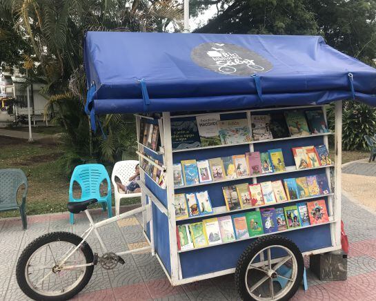 Su forma de teletransportarlos son unas bicicletas que un día Jairo vio adaptadas para llevar plátano. Él diseñó su propia estructura y la mandó a hacer para llenarla de libros.