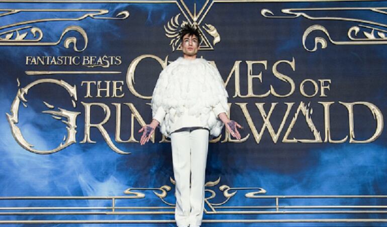 El actor, que interpreta a Credence Barebone en la película, fue fotografiado en Cineworld Leicester Square el pasado martes 13 de noviembre vestido como el famoso pájaro ‘Hedwig’.