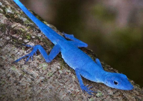 El lagarto brillante azul, es una de las especies únicas de Colombia, que vive en la selva húmeda tropical. También se encuentra el lagarto azul de Gorgona, el cual se encuentra en peligro de extinción.